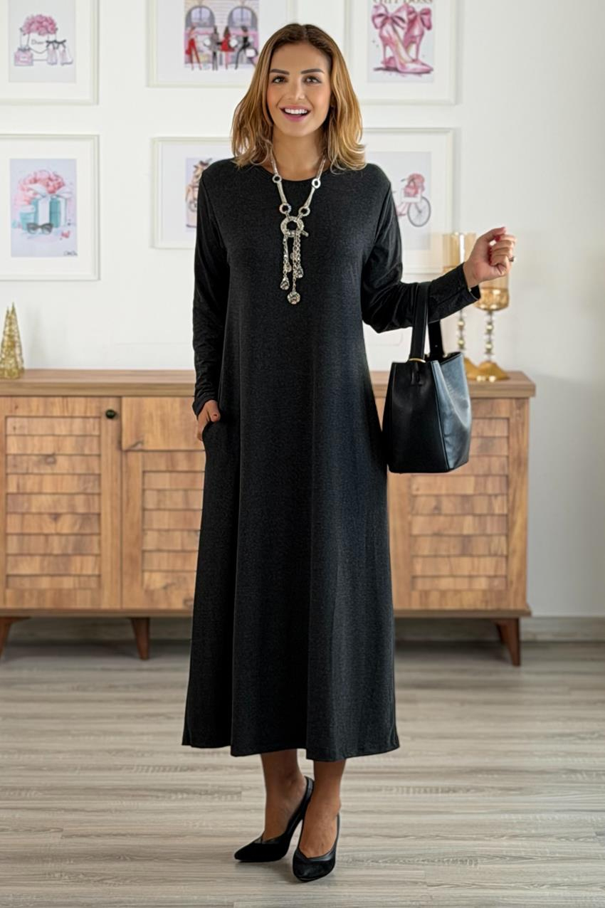 Antrasit Angora Yumuşacık Yün Viskon Elbise