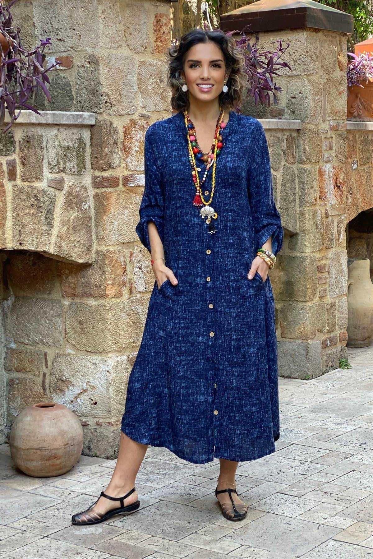 %100 Pamuk Viskon Yazlık Tiril Tiril Kumaş Gri - Kırmızı - Yeşil - Yağ Yeşili - Turkuaz - Denim Çok Rahat Kesim - Boydan Boya Düğmeli Manken Boy: 170 cm Elbise Boy: 120 cm dir Standart Beden 38-48 Beden Arası Uygundur Göğüs Ölçüsü 124 cm Basen Ölçüsü: 144 cm