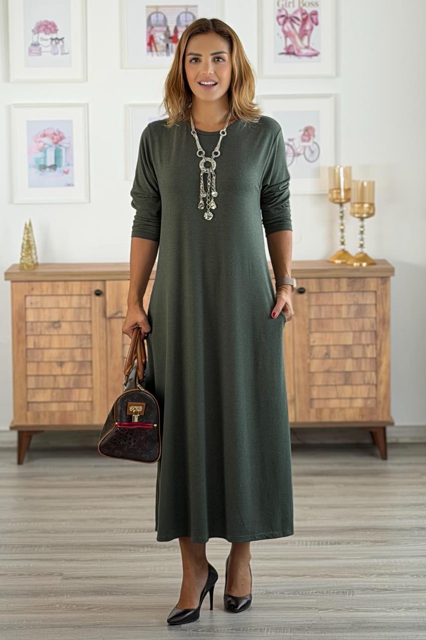 Haki Angora Yumuşacık Yün Viskon Elbise