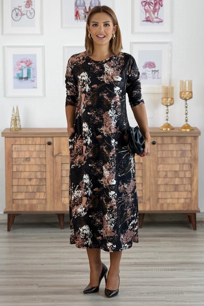 Siyah Tuval Desenli Zımparalı Süet Elbise