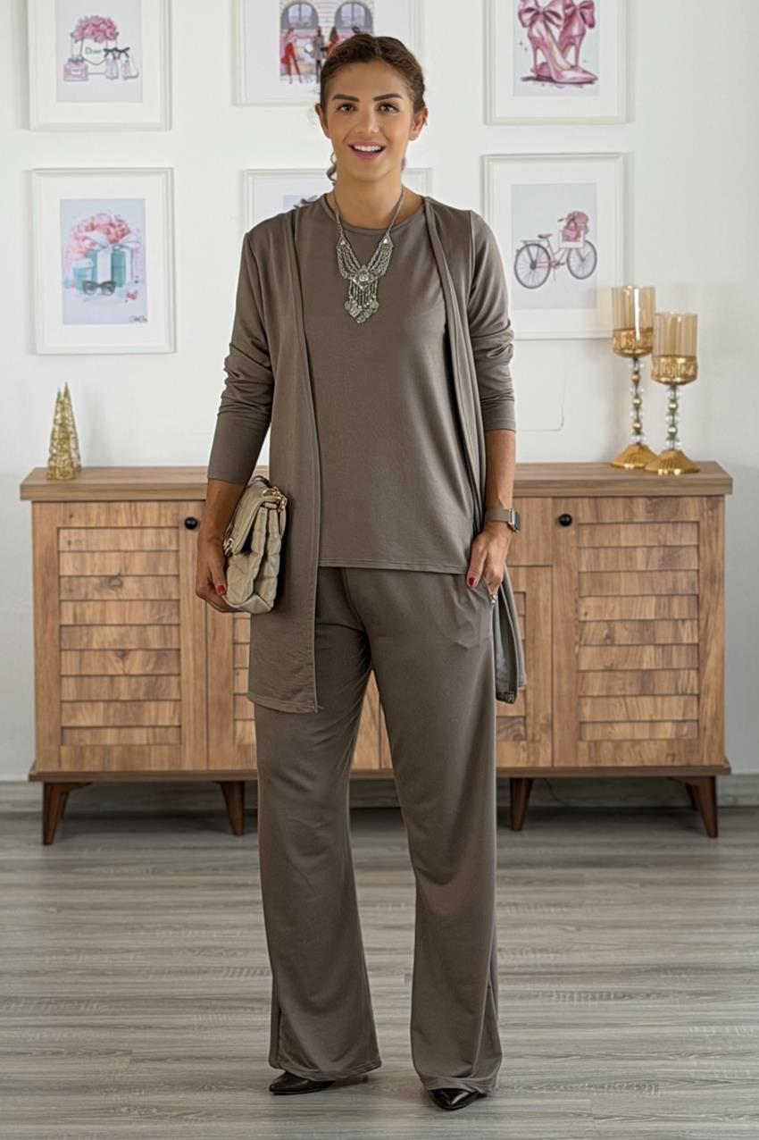 Vizon Üçlü Pantolon Bluz Hırka %100 Pamuk Modal Kumaş Takım